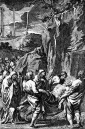 Stacja VII — „Strącenie Chrystusa z mostu do Cedronu”.