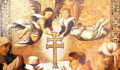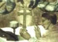 I wskazał palcem w stronę okna, przy którym jak wizja ukazały się dwie nieznane osoby, mające postać aniołów, zbliżyły się do ołtarza i ustawiły na nim … Krzyż!