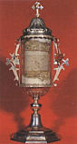 Dziś Sacra Tovaglia – Święte Płótno obrusa - przechowywane jest w kryształowym cylindrze wbudowanym w srebrny relikwiarz, wykonany przez mistrza jubilerskiego Antonio Calligari.