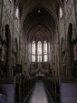 Ale był on w ruinie - w miarę nienaruszona pozostawała tylko wieża z zegarem. Dodatkowo stodoła-kościół znajdowała się w lepiej położonym miejscu. Zdecydowano się więc wykorzystać kamienie dawnej świątyni do rozbudowania szopy, w której następnie przez dziesięciolecia odprawiano nabożeństwa. Póżniej w 1884 r.wybudowano nowy kościół, w którym w okna wstawiono witraże: trzy z nich – wykonane w warsztacie Karola Franciszka (fr. Charles-François) Champigneulle (1820, Metz – 1882, Savonnières-devant-Bar) z Paryża - ilustrujące wydarzenia z 1342 r. Na ścianie pojawił się obraz ukazujący to samo wydarzenie…