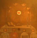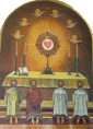 Chwilę później kapłani zobaczyli trzy niewielkie, lśniące, białe Serca, połączone ze sobą. Dla wszystkich było oczywiste, że symbolizować miały One trzy Osoby Trójcy Przenajświętszej, Boga Ojca, Syna i Ducha Świętego…