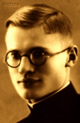After German and Russian invasion of Poland in 09.1939 and start of the World War II, during German occupation chaplain to the Daughters of Charity and Orphanage run by them in Pęchery n. Warsaw, in General Governorate.