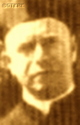 After German and Russian invasion of Poland in 09.1939 and start of the World War II, during the genocide perpetrated by Ukrainians, known as „Volyn genocide”, in danger of imminent attacks of the genocidal Ukrainian OUN/UPA organization, after number of murders of his Polish parishioners, with permission of his bishop, clandestinely — taking with him a holy Częstochowa Mother of God icon from Długoszyje church — hidden in a cart under stack of hay left in 09.1943 his parish and diocese.