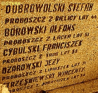 Lida (massacre): In 06‐07.1942 arrested c. 100 Poles in Lida and vicinity, including c. 16 Polish catholic priests. All were jailed in Lida prison. Some were subseqently released, others perished in prison. On 10.03.1943 in a nearby pine forest, by infantry barracks, Germans murdered remaining 9 priests and 5 other Poles. (more on: www.archibial.plClick to attempt to display webpage