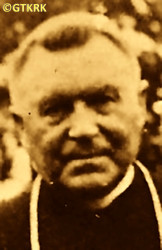 After German and Russian invasion of Poland in 09.1939 and start of the World War II, after start of the German occupation, administered his diocese from 09.1939 till 12.1939. The Germans closed down the building of the Diocesan Curia in Pelpin and sealed it. Closed also the Bishop's Palace. Robbed the diocesan treasury. In front of the seminary building set up a pole with the flag of the German National Socialist Party, i.e., the swastika.