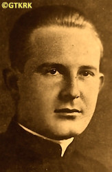 After German and Russian invasion of Poland in 09.1939 and start of the World War II, after start of German occupation, after the arrest on 09/10.09.1939 of his parish priest Apollinaris Kaczyński volunteered with 2 other vicars, Fr Stanislav Krystosik and Fr Casimir Stankiewicz and approached German post asking be exchanged instead.