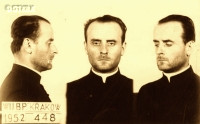 On 20.05.1953, in a show trial during which withdrew all the testimonies made in the investigation — shouted that „my genitalia were crushed” — sentenced to 13 years in prison (excluded from a show trail of Kraków priests because of tortured stated of health).
