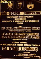 Greater Poland Uprising: Military insurrection of Poles of former German Germ. Posen Provinz (Eng. Poznań province) launched against German Reich in 1918‐1919 — after the abdication on 09.11.1918 of the German Emperor William II Hohenzollern; after the armistice between the Allies and Germany signed on 11.1.1918 in the HQ wagon in Compiègne, the headquarters of Marshal of France Ferdinand Foch — which de facto meant the end of World War I — against the German Weimar Republic, established on the ruins of the German Empire, aiming to incorporate lands captured by Prussia during partitions of Poland in XVIII century into Poland. The Republic of Poland, reborn on 11.11.1918, initially formally included only the so‐called Germ. Königreich Polen (Eng. Kingdom of Poland), i.e. the territory that had been under Russian rule until 1915 and then under the control of Central States (Germany and Austria–Hungary), but did not include the Prussian partition. Started on 27.12.1918 in Poznań and ended on 16.02.1919 with the armistice pact in Trier, forced by the victorious Entente states, which included provisions ordering Germany to cease operations against Poland and, importantly, recognizing the Polish insurgent Greater Poland Army as an allied armed force of the Entente. De facto it turned out to be a Polish victory, confirmed in the main peace treaty after World War I, the Treaty of Versailles of 28.06.1919, which came into force on 10.01.1920 and in which most of the lands of the Prussian partition were recognized as Polish. Many Polish priests took part in the Uprising, both as chaplains of the insurgents units and members and leaders of the Polish agencies and councils set up in the areas covered by the Uprising. In 1939 after German invasion of Poland and start of the World War II those priests were particularly persecuted by the Germans and majority of them were murdered. (more on: en.wikipedia.orgClick to attempt to display webpage