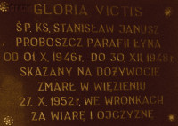 Accused of collaboration with the clandestine Freedom and Independence WIN organization (the so‐called „steadfast and cursed soldiers” — both he and other defendants claimed that they had learned about their membership at a court hearing) in Olsztyn and in the village of Łyna, where was a chaplain, intelligence and terrorist activities, collection of information about the functioning of the UB in Olsztyn and passing them on to the organs of the political People’s Party PSL, incitement to store firearms, persuasion to murder the secretary of the Commie‐Nazi PPR party in Łyna, and distribution of anti–communist letters and leaflets.