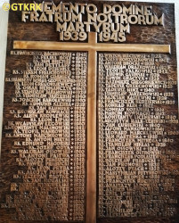 Ribbentrop‐Molotov: Genocidal Russian‐German alliance pact between Russian leader Joseph Stalin and German leader Adolf Hitler signed on 23.08.1939 in Moscow by respective foreign ministers, Mr. Vyacheslav Molotov for Russia and Joachim von Ribbentrop for Germany. The pact sanctioned and was the direct cause of joint Russian and German invasion of Poland and the outbreak of the World War II in 09.1939. In a political sense, the pact was an attempt to restore the status quo ante before 1914, with one exception, namely the „commercial” exchange of the so‐called „Kingdom of Poland”, which in 1914 was part of the Russian Empire, fore Eastern Galicia (today's western Ukraine), in 1914 belonging to the Austro‐Hungarian Empire. Galicia, including Lviv, was to be taken over by the Russians, the „Kingdom of Poland” — under the name of the General Governorate — Germany. The resultant „war was one of the greatest calamities and dramas of humanity in history, for two atheistic and anti‐Christian ideologies — national and international socialism — rejected God and His fifth Decalogue commandment: Thou shall not kill!” (Abp Stanislav Gądecki, 01.09.2019). The decisions taken — backed up by the betrayal of the formal allies of Poland, France and Germany, which on 12.09.1939, at a joint conference in Abbeville, decided not to provide aid to attacked Poland and not to take military action against Germany (a clear breach of treaty obligations with Poland) — were on 28.09.1939 slightly altered and made more precise when a treaty on „German‐Russian boundaries and friendship” was agreed by the same murderous signatories. One of its findings was establishment of spheres of influence in Central and Eastern Europe and in consequence IV partition of Poland. In one of its secret annexes agreed, that: „the Signatories will not tolerate on its respective territories any Polish propaganda that affects the territory of the other Side. On their respective territories they will suppress all such propaganda and inform each other of the measures taken to accomplish it”. The agreements resulted in a series of meeting between two genocidal organization representing both sides — German Gestapo and Russian NKVD when coordination of efforts to exterminate Polish intelligentsia and Polish leading classes (in Germany called «Intelligenzaktion», in Russia took the form of Katyń massacres) where discussed. Resulted in deaths of hundreds of thousands of Polish intelligentsia, including thousands of priests presented here, and tens of millions of ordinary people,. The results of this Russian‐German pact lasted till 1989 and are still in evidence even today. (more on: en.wikipedia.orgClick to attempt to display webpage