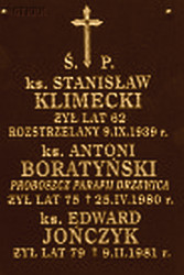Drzewica: On 09.09.1939 Germans attack Polish army unit (its chaplain was father Daleciński) hiding in Drzewica rectory. After overruning it parish priest father Klimecki introduced father Dolaciński as parish vicar but army boots had given him away. Both priest were immediately murdered by Germans. Altogether 11 Poles were murdered this day in Drzewica and surrounding villages. (more on: www.drzewica.plClick to attempt to display webpage