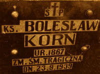After German and Russian invasion of Poland in 09.1939 and start of the World War II, after start of Russian occupation murdered by the Russians ‐ prob. in revenge for a local conflict denounced by local Orthodox parishioners, shot (or killed with bayonets) by Russian soldiers (prob. supported by the aforementioned parishioners) and ditched under a local bridge leading to a forest.