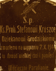 Historical memory has not preserved information about the nature of the school strike in his parish Opalenica. There was a small German primary school there. It is known, however, that in 1906‐1907 in nearby Grodzisk Wielkopolski, 296 children participated in strikes for Polish prayer and Polish language religious education. And prob. at that time was detained by the Germans and sentenced by the court in Grodzisk to a fine of 400 German marks — „for national activities during the school strike”. Prob. supported the striking children and their families, or organized the so–called „Września fund” to support the persecuted.