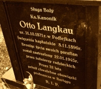 During the final Russian push of the World War II — started by German and Russian invasion of Poland in 09.1939 — in 01.1945 in East Prussia Russians barged into the rectory, where in the basement he was hiding together with hew vicar and nephew, Fr Paul Langkau, and his sister, among others.