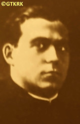 Upon arrival arrested along with 18 Pelplin cathedral canons and professors from the Catholic „Collegium Marianum” gymnasium. On that day, the Germans — members of the genocidal Germ. Volksdeutscher Selbstschutz (Eng. Ethnic German Self–Defense), i.e. VS, treasonous representatives of the German minority in Poland; the Germ. Ordnungspolizei (Eng. Order Police), i.e. OrPo, a formation directly subordinated to the Germ. Chef der Deutschen Polizei (Eng. Chief of the German Police), the genocide master Heinrich Himmler; the paramilitary, genocidal Germ. Die Schutzstaffel der NSDAP (Eng. NSDAP Protection Unit), i.e. «SS», and Germ. Sturmabteilungen der NSDAP (Eng. NSDAP Storm Troops), i.e. «SA», organizations, subordinates to the ruling National Socialist German Workers’ Party NSDAP — arrested, as part of the Germ. «Intelligenzaktion» (Eng. „Intelligence Action”), i.e. the extermination of the Polish intelligentsia and the leadership classes of Pomerania, at least 21 Catholic priests.