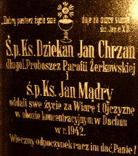 KL Dachau: KL Dachau in German Bavaria, set up in 1933, became the main German Germ. Konzentrationslager (Eng. concentration camp) KL for Catholic priests and religious during World War II: On c. 09.11.1940, Reichsführer‐SS Heinrich Himmler, head of the SS, Gestapo and German police, as a result of the Vatican's intervention, decided to transfer all clergymen detained in various concentration camps to KL Dachau camp. The first major transports took place on 08.12.1940. In KL Dachau Germans held approx. 3,000 priests, including 1,800 Poles. The priests were forced to slave labor in the Germ. „Die Plantage” — the largest herb garden in Europe, managed by the genocidal SS, consisting of many greenhouses, laboratory buildings and arable land, where experiments with new natural medicines were conducted — for many hours, without breaks, without protective clothing, no food. They slaved in construction, e.g. of camp's crematorium. In the barracks ruled hunger, freezing cold in the winter and suffocating heat during the summer, especially acute in 1941‐1942. Prisoners suffered from bouts of illnesses, including tuberculosis. Many were victims of murderous „medical experiments” — in 11.1942 c. 20 were given phlegmon injections; in 07.1942 to 05.1944 c. 120 were used by for malaria experiments. More than 750 Polish clerics where murdered by the Germans, some brought to TA Hartheim euthanasia centre set up in Schloss Hartheim in Austria and murdered in gas chambers. At its peak KL Dachau concentration camps’ system had nearly 100 slave labour sub‐camps located throughout southern Germany and Austria. There were c. 32,000 documented deaths at the camp, and thousands perished without a trace. C. 10,000 of the 30,000 inmates were found sick at the time of liberation, on 29.04.1945, by the USA troops… (more on: www.kz-gedenkstaette-dachau.deClick to attempt to display webpage