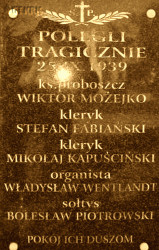 Apprehended by the revolting Ukrainian nationalists in his rectory and in a nearby Burki (Cześniki) forest brutally murdered — prob. with Russian soldiers' participation — together two Silesians' student, Stephen Fabiański and Nicholas Kapuściński, who facing German invasion left Oświęcim and moved east, and two civilians.
