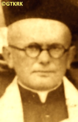 After German and Russian invasion of Poland in 09.1939 and start of the World War II, after start of German occupation, murdered during robbery attack of the rectory — prob. by a Commie‐Nazi PPR or GL gang.