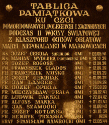 After the defeat of Poland and the start of the German occupation, unable to return to Markowice — in 10.1939, the Germans closed the church and changed it into a car warehouse, in the monastery buildings set up a school for German youth, and deported some of the friars to German concentration camps — went to his family (then already in Warthegau province — a part of occupied Poland directly incorporated into Germany).