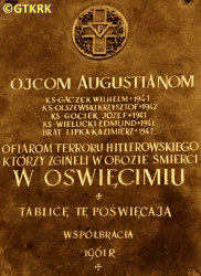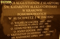 20.09.1941 arrests (Cracow): During the night of 19‐20.09.1941 German murderous political policy Gestapo entered Augustinian Congregation OSA monastery in Cracow‐Kazimierz, by St Catherine of Alexandria and St Margaret church. As part of continuing repressions against the Polish clergy, incriminating friars of storing leaflets of Polish resistance organizations (part of Polish Clandestine State) calling for resisting German occupation authorities — in particular authorities of the so‐called Germ. Generalgouvernement (Eng. General Governorate) — and of using „banned” receivers‐transmitters, i.e. radio, 7 friar fathers and 1 brother were arrested. All were initially jailed in Montelupich Str. prison in Cracow where were tortured during interrogations and then sent to German concentration camps. Five of them never returned. (more on: www.augustianie.plClick to attempt to display webpage