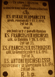 KL Dachau: KL Dachau in German Bavaria, set up in 1933, became the main German Germ. Konzentrationslager (Eng. concentration camp) KL for Catholic priests and religious during World War II: On c. 09.11.1940, Reichsführer‐SS Heinrich Himmler, head of the SS, Gestapo and German police, as a result of the Vatican's intervention, decided to transfer all clergymen detained in various concentration camps to KL Dachau camp. The first major transports took place on 08.12.1940. In KL Dachau Germans held approx. 3,000 priests, including 1,800 Poles. The priests were forced to slave labor in the Germ. „Die Plantage” — the largest herb garden in Europe, managed by the genocidal SS, consisting of many greenhouses, laboratory buildings and arable land, where experiments with new natural medicines were conducted — for many hours, without breaks, without protective clothing, no food. They slaved in construction, e.g. of camp's crematorium. In the barracks ruled hunger, freezing cold in the winter and suffocating heat during the summer, especially acute in 1941‐1942. Prisoners suffered from bouts of illnesses, including tuberculosis. Many were victims of murderous „medical experiments” — in 11.1942 c. 20 were given phlegmon injections; in 07.1942 to 05.1944 c. 120 were used by for malaria experiments. More than 750 Polish clerics where murdered by the Germans, some brought to TA Hartheim euthanasia centre set up in Schloss Hartheim in Austria and murdered in gas chambers. At its peak KL Dachau concentration camps’ system had nearly 100 slave labour sub‐camps located throughout southern Germany and Austria. There were c. 32,000 documented deaths at the camp, and thousands perished without a trace. C. 10,000 of the 30,000 inmates were found sick at the time of liberation, on 29.04.1945, by the USA troops… (more on: www.kz-gedenkstaette-dachau.deClick to attempt to display webpage