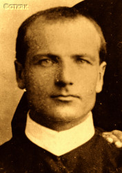 After German and Russian invasion of Poland in 09.1939 and start of the World War II, after start of the German occupation, after Warsaw Uprising outbreak on 01.08.1944 detained by Germans on 05.08.1944 and next day shot in a mass execution of 30 Redemptorist Fathers (part of Wola district genocide) at Kirchmajer and Marczewski agricultural machinery warehouse in Warsaw, Wolska Str., by 36th Grenadiers Division SS‐Sturmbrigade „Dirlewanger”, consisting of Germans and number of Russians, Belarusians and Ukrainians.