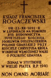 [access: 2022.02.24] ⋄ Christ the King RC church — titular pastor; also: 1928 initiator and builder of the church — consecration on 30.10.1932; in 1935 submitted a memorial to Pope Pius XI regarding the establishment of Polish personal parishes in the Free City of Gdańsk — on 07.10.1937 became the parish priest of such a parish at Christ the King church, where was a rector, but after a protest from the German Senate of Gdańsk, the Gdańsk bishop on 13.10.1938 revoked the decree and the appointment was suspended; 1936 prefect at Polish trade schools in Gdańsk; 01.04‐03.07.1927 prefect at the Polish Gymnasium of the Gdańsk School Society in Gdańsk; from 1930 chaplain to the employees of the Polish Post Office in the Free City of Gdańsk; 1930‐1933 chaplain of the District Directorate of the Polish State Railways Gdańsk, i.e. DOKP Gdańsk; 1933‐1939 chaplain of the Gdańsk Office of the Polish State Railways PKP; from 1937 member of the Management Board of the „Polish Commune of the Association of Poles” — previously a member of the „Polish Commune”; 1934‐1939 president of the Central Committee of Poles and Catholics of the Diocese of Gdańsk; 1929‐1939 vice‐president of the Polish Gdańsk School Society, educational organization taking care for the development of education in the Free City of Gdańsk; member of the board of the Catholic League in Gdańsk