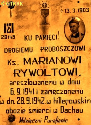 KL Dachau: KL Dachau in German Bavaria, set up in 1933, became the main German Germ. Konzentrationslager (Eng. concentration camp) KL for Catholic priests and religious during World War II: On c. 09.11.1940, Reichsführer‐SS Heinrich Himmler, head of the SS, Gestapo and German police, as a result of the Vatican's intervention, decided to transfer all clergymen detained in various concentration camps to KL Dachau camp. The first major transports took place on 08.12.1940. In KL Dachau Germans held approx. 3,000 priests, including 1,800 Poles. The priests were forced to slave labor in the Germ. „Die Plantage” — the largest herb garden in Europe, managed by the genocidal SS, consisting of many greenhouses, laboratory buildings and arable land, where experiments with new natural medicines were conducted — for many hours, without breaks, without protective clothing, no food. They slaved in construction, e.g. of camp's crematorium. In the barracks ruled hunger, freezing cold in the winter and suffocating heat during the summer, especially acute in 1941‐1942. Prisoners suffered from bouts of illnesses, including tuberculosis. Many were victims of murderous „medical experiments” — in 11.1942 c. 20 were given phlegmon injections; in 07.1942 to 05.1944 c. 120 were used by for malaria experiments. More than 750 Polish clerics where murdered by the Germans, some brought to TA Hartheim euthanasia centre set up in Schloss Hartheim in Austria and murdered in gas chambers. At its peak KL Dachau concentration camps’ system had nearly 100 slave labour sub‐camps located throughout southern Germany and Austria. There were c. 32,000 documented deaths at the camp, and thousands perished without a trace. C. 10,000 of the 30,000 inmates were found sick at the time of liberation, on 29.04.1945, by the USA troops… (more on: www.kz-gedenkstaette-dachau.deClick to attempt to display webpage