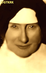 Perished during Warsaw Uprising of 08‐10.1944 — during World War II and the German occupation of Warsaw, which began with the German and Russian invasion of the Poland in 09.1939 — under the rubble of St Casimir church in Warsaw bombed out by the Germans, along with 33 other nuns and over 1,000 civilians.