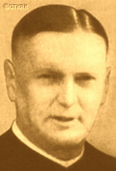 During Russian winter 1945 advance at the end of World War II — started by German and Russian invasion of Poland in 09.1939 — after capture of his Miłakowo parish village by the Russians (nearby Morąg Russians captured on 23.01.1945) arrested by Russians on 30.01.1945 and led out of his rectory.
