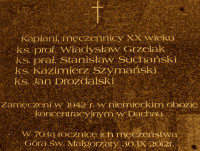 KL Dachau: KL Dachau in German Bavaria, set up in 1933, became the main German Germ. Konzentrationslager (Eng. concentration camp) KL for Catholic priests and religious during World War II: On c. 09.11.1940, Reichsführer‐SS Heinrich Himmler, head of the SS, Gestapo and German police, as a result of the Vatican's intervention, decided to transfer all clergymen detained in various concentration camps to KL Dachau camp. The first major transports took place on 08.12.1940. In KL Dachau Germans held approx. 3,000 priests, including 1,800 Poles. The priests were forced to slave labor in the Germ. „Die Plantage” — the largest herb garden in Europe, managed by the genocidal SS, consisting of many greenhouses, laboratory buildings and arable land, where experiments with new natural medicines were conducted — for many hours, without breaks, without protective clothing, no food. They slaved in construction, e.g. of camp's crematorium. In the barracks ruled hunger, freezing cold in the winter and suffocating heat during the summer, especially acute in 1941‐1942. Prisoners suffered from bouts of illnesses, including tuberculosis. Many were victims of murderous „medical experiments” — in 11.1942 c. 20 were given phlegmon injections; in 07.1942 to 05.1944 c. 120 were used by for malaria experiments. More than 750 Polish clerics where murdered by the Germans, some brought to TA Hartheim euthanasia centre set up in Schloss Hartheim in Austria and murdered in gas chambers. At its peak KL Dachau concentration camps’ system had nearly 100 slave labour sub‐camps located throughout southern Germany and Austria. There were c. 32,000 documented deaths at the camp, and thousands perished without a trace. C. 10,000 of the 30,000 inmates were found sick at the time of liberation, on 29.04.1945, by the USA troops… (more on: www.kz-gedenkstaette-dachau.deClick to attempt to display webpage