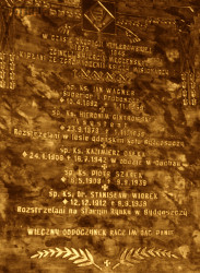 In retaliation for events of so‐called Germ. „Bromberger Blutsonntag” (Eng. „Bydgoszcz Bloody Sunday”) of 03‐04.09.1939, when Polish troops — after being shot at by German 5th column in Bydgoszcz, after German attempt at sabotage and armed rebellion — bloodily crushed treacherous German effort murdered by the Germans in the public execution of 50 Poles — with Fr Wiorek, among others — on the Old Market Square in Bydgoszcz.