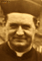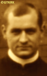 After German and Russian invasion of Poland in 09.1939 and start of the World War II, after start of German occupation, the Germans — members of the paramilitary, genocidal Germ. Die Schutzstaffel der NSDAP (Eng. NSDAP Protection Unit), i.e. «SS», subordinate to the National Socialist German Workers' Party NSDAP — arrived at his rectory on 21.11.1939 but did not find him there.
