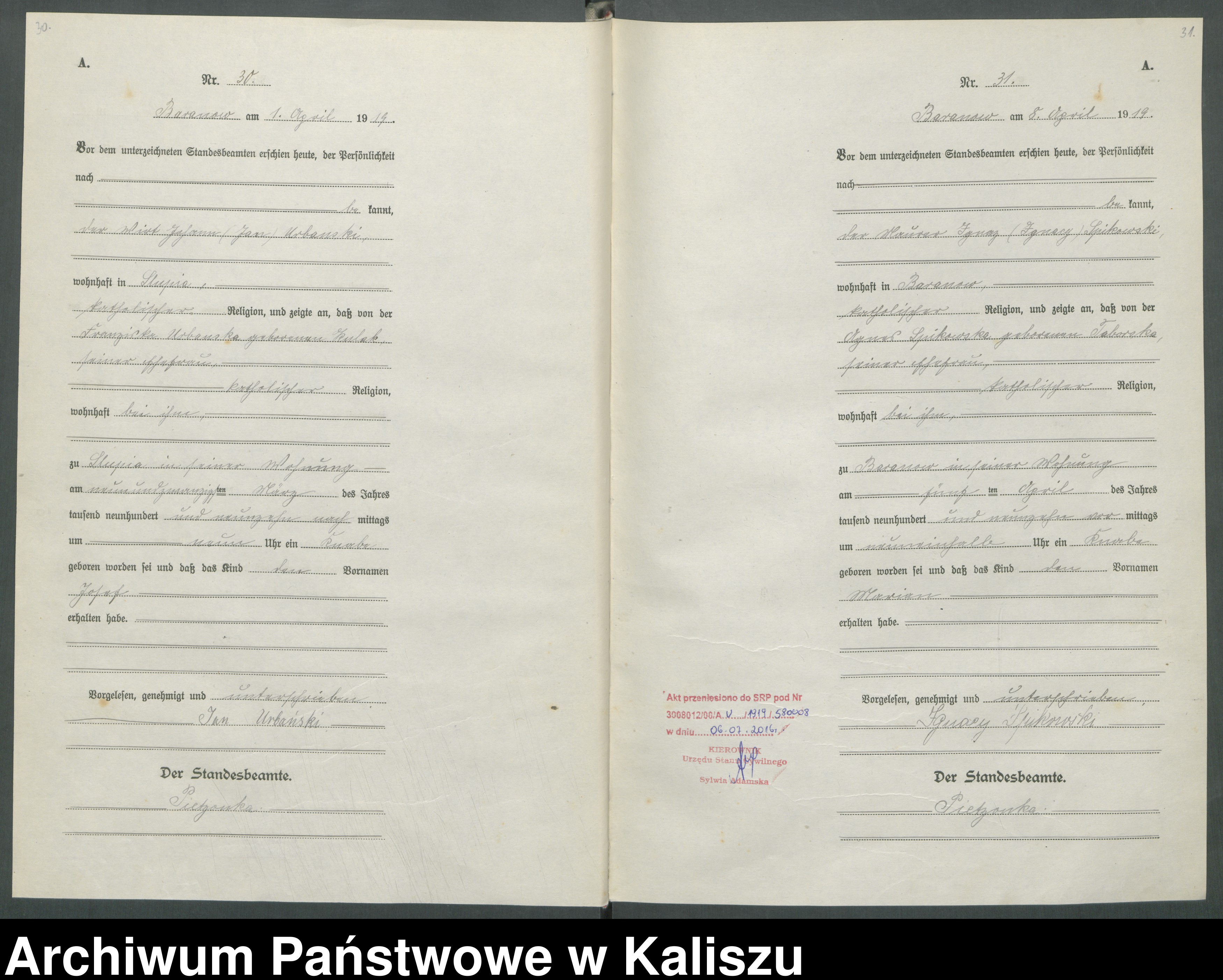 05.04.1919Birth certification on: