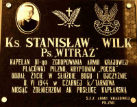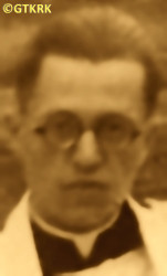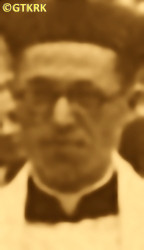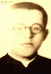 After German and Russian invasion of Poland in 09.1939 and start of the World War II, after start of German occupation, after ordination, teacher of the clandestine „Forge” school in Pilzno and chaplain of the 3rd Group „Bullet” of Polish clandestine resistance Home Army AK and partisans' „Bell” unit in Pilzno (part of Polish Clandestine State), under nom–de–guerre „Stained‐Glass” and „Rański”.