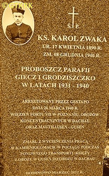 KL Dachau: KL Dachau in German Bavaria, set up in 1933, became the main German Germ. Konzentrationslager (Eng. concentration camp) KL for Catholic priests and religious during World War II: On c. 09.11.1940, Reichsführer‐SS Heinrich Himmler, head of the SS, Gestapo and German police, as a result of the Vatican's intervention, decided to transfer all clergymen detained in various concentration camps to KL Dachau camp. The first major transports took place on 08.12.1940. In KL Dachau Germans held approx. 3,000 priests, including 1,800 Poles. The priests were forced to slave labor in the Germ. „Die Plantage” — the largest herb garden in Europe, managed by the genocidal SS, consisting of many greenhouses, laboratory buildings and arable land, where experiments with new natural medicines were conducted — for many hours, without breaks, without protective clothing, no food. They slaved in construction, e.g. of camp's crematorium. In the barracks ruled hunger, freezing cold in the winter and suffocating heat during the summer, especially acute in 1941‐1942. Prisoners suffered from bouts of illnesses, including tuberculosis. Many were victims of murderous „medical experiments” — in 11.1942 c. 20 were given phlegmon injections; in 07.1942 to 05.1944 c. 120 were used by for malaria experiments. More than 750 Polish clerics where murdered by the Germans, some brought to TA Hartheim euthanasia centre set up in Schloss Hartheim in Austria and murdered in gas chambers. At its peak KL Dachau concentration camps’ system had nearly 100 slave labour sub‐camps located throughout southern Germany and Austria. There were c. 32,000 documented deaths at the camp, and thousands perished without a trace. C. 10,000 of the 30,000 inmates were found sick at the time of liberation, on 29.04.1945, by the USA troops… (more on: www.kz-gedenkstaette-dachau.deClick to attempt to display webpage