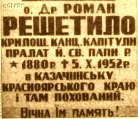 After German and Russian invasion of Poland in 09.1939 and start of the World War II, after German defeat and start in 1944 of another Russian occupation, arrested on 26.06.1946 — during first round of deportation of Ukrainian population from Russian–controlled Polish prl state to Russian–occupied Ukraine and as part of the process of dissolution by the Russians of Greek Catholic Church — by Commie‐Nazi UB, Russian MGB (successor of genocidal Russian NKVD organization) unit, together with Abp Joseph Kocyłowski and Bp Gregory Łakota, and handed over to the Russians.