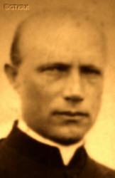 Po niemieckim najeździe na Rzeczpospolitą 01.09.1939 (Rosjanie zaatakowali Polskę 17 dni później) i rozpoczęciu II wojny światowej aresztowany przez Niemców już 02.09.1939 — w odwecie za zastrzelenie pierwszego dnia wojny niemieckiego żołdaka w Podwilku Niemcy podpalili kilkanaście domostw oraz aresztowali około 100 mężczyzn. Wyciągnięty prosto z konfesjonału: jako jedyny z zatrzymanych nie powrócił do swego probostwa.