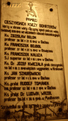 «Intelligenzaktion Schlesien»: Przeprowadzona przez Niemców głównie w 04‐05.1940 akcja aresztowań i eksterminacji polskiej elity intelektualnej Górnego Śląska, w większości umieszczonej na jednej z przygotowanych przed niemiecką agresją tzw. niem. Sonderfahndungsliste (pl. Specjalna lista poszukiwanych), i.e. list proskrypcyjnych „wrogów Rzeszy” — zawierającej nazwiska powstańców śląskich, działaczy plebiscytowych, dziennikarzy, polityków, intelektualistów, urzędników oraz duchownych — mająca na celu całkowitą germanizację regionu. Odnośne rozporządzenie o numerze IV‐D2‐480/40 wydane zostało przez RSHA, czyli niem. Reichssicherheitshauptamt (pl. Główny Urząd Bezpieczeństwa Rzeszy), i podpisane przez Heinricha Himmlera lub Reinharda Heydricha. Część aresztowanych zamordowano w zbiorowych egzekucjach, część wydalono do zarządzanego przez Niemców niem. Generalgouvernement (pl. Generalne Gubernatorstwo), część zesłano do obozów koncentracyjnych. Ustalono personalia 3,047 osób wywiezionych w ciągu dwóch miesięcy 1940. Ofiarami było 33 księży katolickich, z których 22 zginęło w obozach koncentracyjnych (duchowni zostali zesłani — w 5 transportach — najpierw do KL Dachau, a potem do KL Gusen, gdzie niewolniczo pracowali w kamieniołomach). Razem Niemcy zamordowali ok. 2,000 członków górnośląskiej polskiej elity inteligenckiej. (więcej na: pl.wikipedia.orgKliknij by spróbować wyświetlić stronę