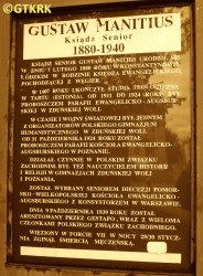 [dostęp: 2021.12.19] ⋄ parafia EA — także: pastor zboru filialnego w Łasku; p.o. („ad interim”) administrator of Wieluń parish (1920‐1922); przewodniczący Rady Miejskiej w Zduńskiej Woli (1917‐1919); jeden z pionierów powołania Towarzystwa im. Henryka Sienkiewicza (sekretarz pierwszego zarządu Towarzystwa), które ok. 1916 doprowadziło do przekstałcenia powstałej ok. 1915 czteroklasowej Szkoły Realnej w ośmioklasowe Gimnazjum Koedukacyjne Filologiczne im. Henryka Sienkiewicza, a następnie w 1921 do przekształcenia tegoż w Państwowe Gimnazjum Koedukacyjne im. Kazimierza Wielkiego; prawd. prefekt i nauczyciel historii w szkole