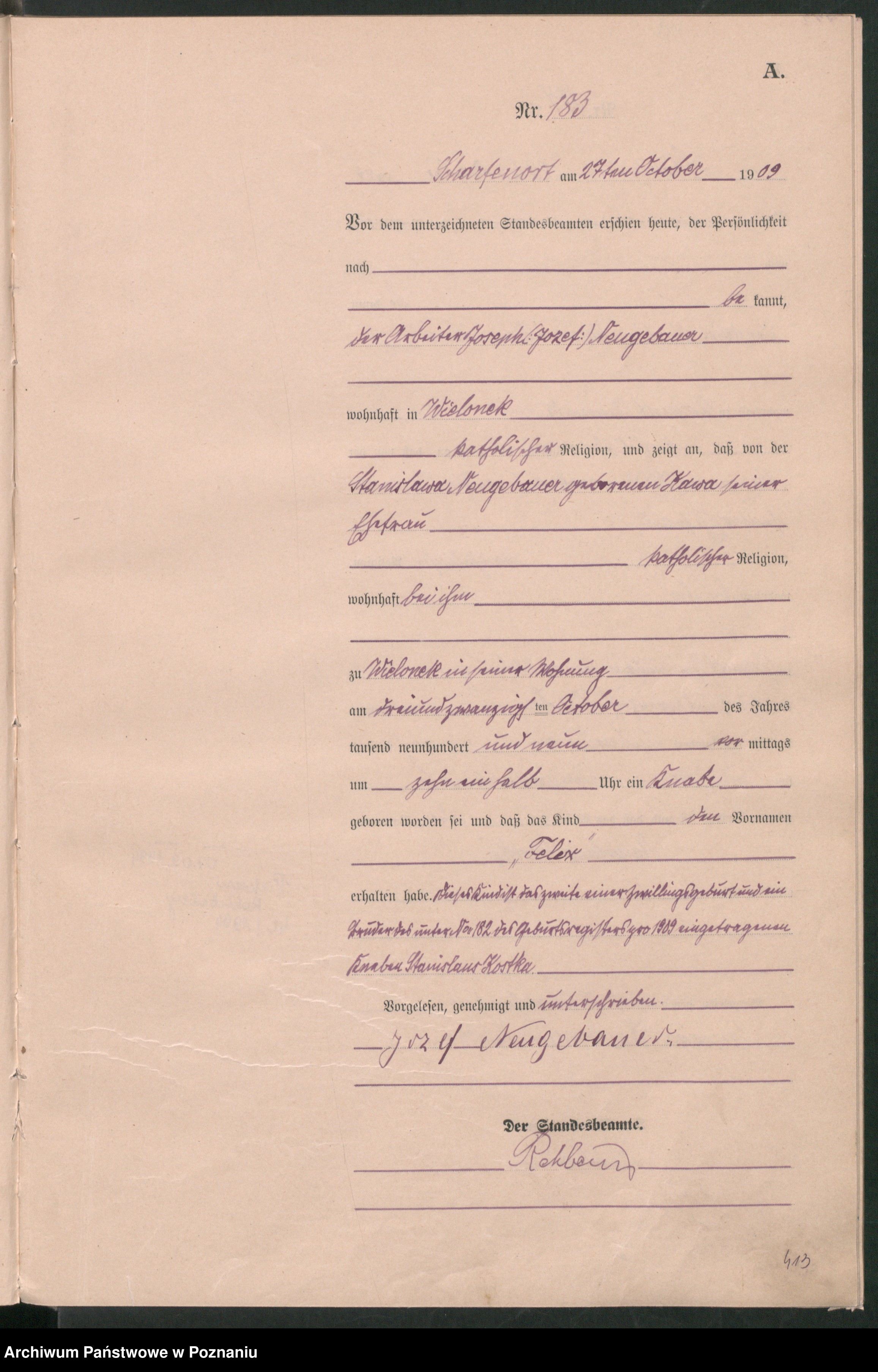 23.10.1909Skan aktu urodzenia na:
