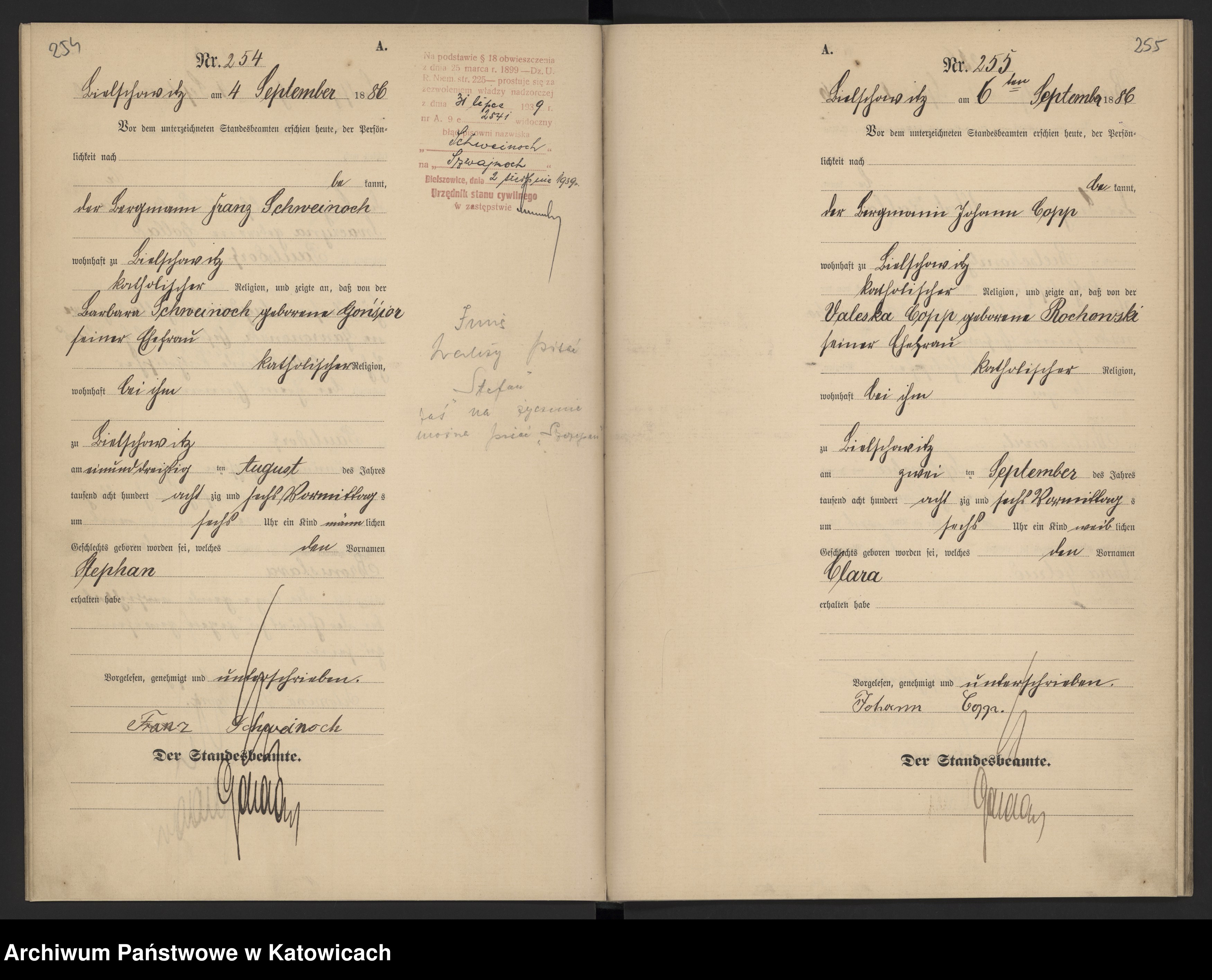 Regierungsbezirk Kattowitz: Po polskiej klęsce w kampanii 09.1939, będącej rezultatem paktu Ribbentrop‐Mołotow i stanowiącej pierwszy etap II wojny światowej, i rozpoczęciu w części Polski okupacji niemieckiej (w drugiej, wschodniej części Polski rozpoczęła się okupacja rosyjska), Niemcy podzielili okupowane polskie terytorium na pięć głównych obszarów (i kilka mniejszych). Największy przekształcili w niem. Generalgouvernement (pl. Generalne Gubernatorstwo), przeznaczone wyłącznie dla Polaków i Żydów i stanowiące część tzw. niem. Großdeutschland (pl. Wielkie Niemcy). Z dwóch utworzyli odrębne nowe prowincje. Dwa pozostałe przyłączyli do już istniejących niemieckich prowincji. Jednym z nich był polski Górny Śląsk, który już 08.10.1939, dekretem przywódcy niemieckiego Adolfa Hitlera (formalnie zaczął obowiązywać 26.10.1939), został wcielony do Niemiec jako niem. Regierungsbezirk Kattowitz (pl. Rejencja katowicka) i wszedł w skład niem. Provinz Schlesien (pl. Prowincja Śląsk) z siedzibą we Wrocławiu. 01.04.1940 niem. Regierungsbezirk Kattowitz powiększony został o kilka przedwojennych powiatów niemieckich, a 18.01.1941 utworzono nową niemiecką prowincję niem. Provinz Oberschlesien (pl. Prowincja Górny Śląsk), który poza niem. Regierungsbezirk Kattowitz objął także Opolszczyznę. Od 26.10.1939, czyli powstania rejencji obowiązywało w niej prawo państwa niemieckiego, to samo co w Berlinie. Główną osią polityki rejencji, której obszar Niemcy uznali za niem. „Ursprünglich Deutsche” (pl. „rdzennie niemieckie”), mimo iż tylko ok. 6% mieszkańców jej przedwojennej polskiej części stanowili Niemcy, było niem. „Entpolonisierung” (pl. „odpolszczenie”), czyli przymusowa germanizacja. Głównym mechanizmem było wprowadzenie niem. Deutsche Volksliste (pl. folkslista) DVL, niemieckiej listy narodowościowej, która miała precyzować przynależność narodową mieszkańców rejencji. Najliczniejszą grupą, która zaznaczano w przeprowadzonych przymusowych rejestracjach, była Grupa 3, osób, które określiły się jako „Ślązacy” (w 1943 ok. 41%), oraz osoby pozostające poza DVL (ok. 36%). Ta ostatnia grupa przeznaczona była docelowo na deportację do niem. Generalgouvernement (do czego masowo nie doszło, bo niemiecki przemysł potrzebował niewolniczej siły roboczej). Grupa 3, uznawana przez Niemców za możliwych do zniemczenia, podlegała pewnym ograniczeniom prawnym, i obowiązywała ją m.in. służba w wojsku niemieckim Wehrmacht. Dzieci mogły się uczyć tylko po niemiecku. Wobec ludności polskiej prowadzono politykę terroru. Działał specjalny sąd policyjny, kontrolowany przez niem. Geheime Staatspolizei (pl. Tajna Policja Państwowa), i.e. Gestapo, przed którym stanęło ok. 4,000‐5,000 osób. Za lata 1942‐1945 zweryfikowano ponad 2,000 z nich, z czego 1,890 skazano na kary śmierci, w tym 286 w publicznych egzekucjach. Tysiące osób zamordowano w czasie tzw. «Intelligenzaktion Schlesien», w tym 300‐650 polskich nauczycieli i ok. 61 polskich kapłanów katolickich. Na terenie rejencji znajdował się niemiecki obóz koncentracyjny i obóz zagłady KL Auschwitz, w którym Niemcy więzili ok. 1,100,000 Żydów (mordując ok. 1,000,000, i.e. ok. 90% z nich) oraz ok. 140,000 Polaków (mordując ok. 70,000, i.e. ok. 50% z nich). Po zakończeniu działań zbrojnych II wojny światowej nadzorca prowincji niem. Provinz Schlesien, niem. Reichsstatthalter (pl. Namiestnik Rzeszy) i niem. Gauleiter (pl. naczelnik okręgu) niemieckiej partii narodowo–socjalistycznej, Fritz Brecht, popełnił samobójstwo. (więcej na: pl.wikipedia.orgKliknij by spróbować wyświetlić stronę