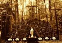 Piaśnica: W lasach piaśnickich, ok. 1 km od centrum wsi Wielka Piaśnica w pobliżu Wejherowa na Pomorzu, w ramach niem. «Intelligenzaktion», od 10.1939 do 04.1940 Niemcy zamordowali, w masowych egzekucjach, 12,000‐14,000 Polaków z Pomorza Gdańskiego, w większości polskiej inteligencji. Ludobójstwa dokonywały jednostki SS (m.in. z oddziału Wachsturmbann „Eimann”) z pomocą członków paramilitarnej organizacji Volksdeutscher Selbstschutz VS, zdradzieckich obywateli Polski niemieckiego pochodzenia. Mordowano aresztowane osoby, które znalazły się na na jednej z przygotowanych przed niemiecką agresją tzw. niem. Sonderfahndungsliste (pl. Specjalna lista poszukiwanych), i.e. imiennej liście proskrypcyjnej „wrogów Rzeszy”, bądź na innej liście proskrypcyjnej, sporządzonej ad hoc na podstawie donosów lokalnych niem. Volksdeutsche (pl. etniczni Niemcy), i.e. przedstawicieli mniejszości niemieckiej w Polsce. Ofiary dowożono zazwyczaj pociągami do Wejherowa, w doczepionych do zwykłego pojazdu kursowego zamkniętych wagonach. Tam wagony odczepiano i ofiary, po brutalnej selekcji z rodzielaniem rodzin i dzieci, ładowano na samochody ciężarowe i autobusy. Na miejscu czekały na nich doły, wykopywane wcześniej najpierw przez lokalnych niemieckich rolników, a później przez Polaków‐więźniów z obozu niem. Neufahrwasser w Gdańsku, zwanych niem. „Himmelfahrtskommando” (pl. „Komando Wniebowstąpienia”), których po jakimś czasie mordowano i sprowadzano nowych. Ofiary musiały się rozebrać do bielizny, a następnie w grupach po 5‐6 osób były mordowane strzałem w tył głowy, w pozycji stojącej lub klęczącej nad wykopanym dołem. Ranni byli dobijani — niektórzy ciosami kolb karabinowych. Niektóre z dzieci zamordowano rozstrzaskując ich główki o pnie drzew. Groby zakopywano, a w 1940 zasadzono na nich sadzonki drzew i krzewów. W 1944, w związku ze zbliżaniem się frontu niemiecko‐rosyjskiego i nieuchronnej klęski, w ramach niem. „Sonderaktion 1005” (pl. „Akcja Specjalna 1005”), grupy więźniów z obozu koncentracyjnego KL Stutthof, określane jako niem. „Leichenkommandos” (pl. „Trupie Jednostki”) — pod nadzorem Niemców, członków ludobójczej niem. Sicherheitsdienst des Reichsführers SS (pl. Służba Bezpieczeństwa Reichsführera SS), i.e.«SD» — wykopali zwłoki zamordowanych, po czym je spalili. Więźniów Niemcy następnie zamordowali. Piaśnica określana jest jako „pomorski Katyń” lub „Kaszubska Golgota”. (więcej na: pl.wikipedia.orgKliknij by spróbować wyświetlić stronę