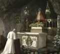 Figurkę przeniesiono do największej z nich, zwanej Covadonga (z łac. Cova Dominica – Grota Pani), i tam błagano Niepokalaną o obronę i wsparcie w nadchodzącej bitwie.