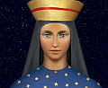 Śnieg przestał padać. Gdy spojrzał na niebo było usiane gwiazdami. Całe, poza … przestrzenią nad dachem sąsiada, Augustyna Guidecoqa. I tam, nagle, pojawiła się Piękna, uśmiechająca się i wyciągająca ręce, Pani, w błękitnej szacie usianej gwiazdami, ze złotą koroną na głowie!