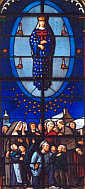 Czerwony krucyfiks znika. Maryja przyjmuje, jak na początku, wyciąga ręce w geście witania…