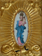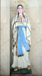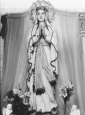 Ubrana była w śnieżno-białą suknię opasaną niebieskim pasem. Ręce miała złożone – jak Matka Boża z Lourdes – pamiętać należy, że objawienia w Lourdes rozpoczęły się 11.ii.1858 r. i właśnie zaczynały się obchody 100-lecia tych wydarzeń. Z lewej ręki Madonny zwisał różaniec o złotych i białych paciorkach.
