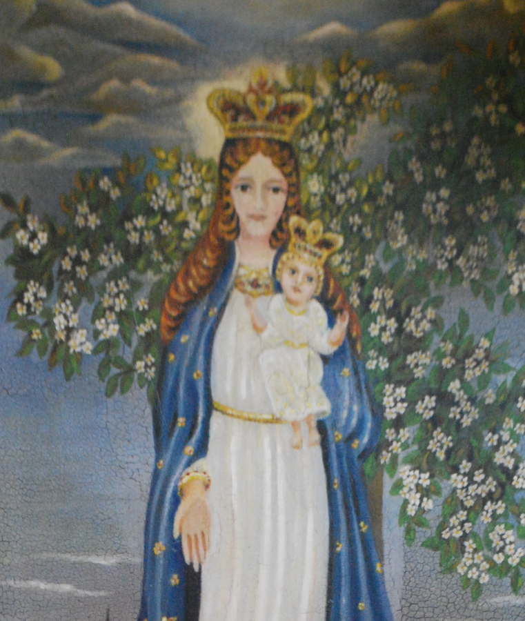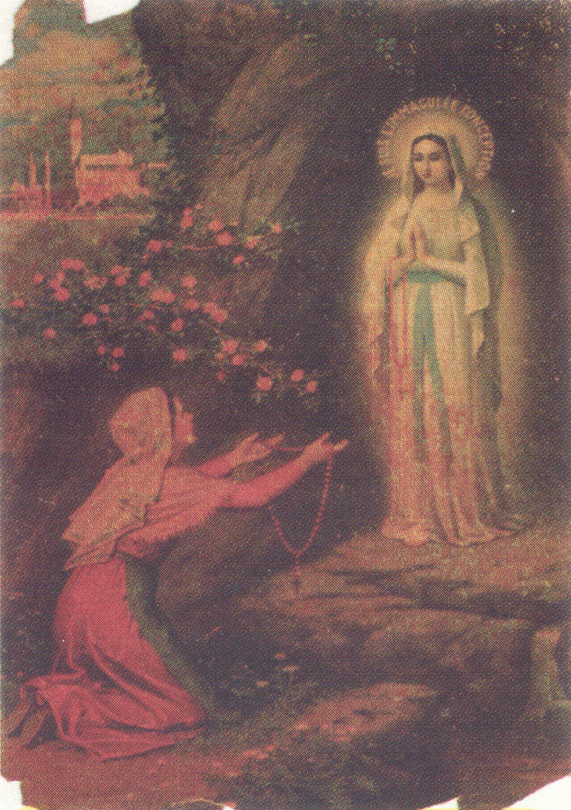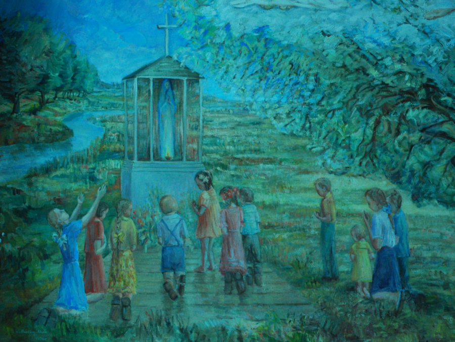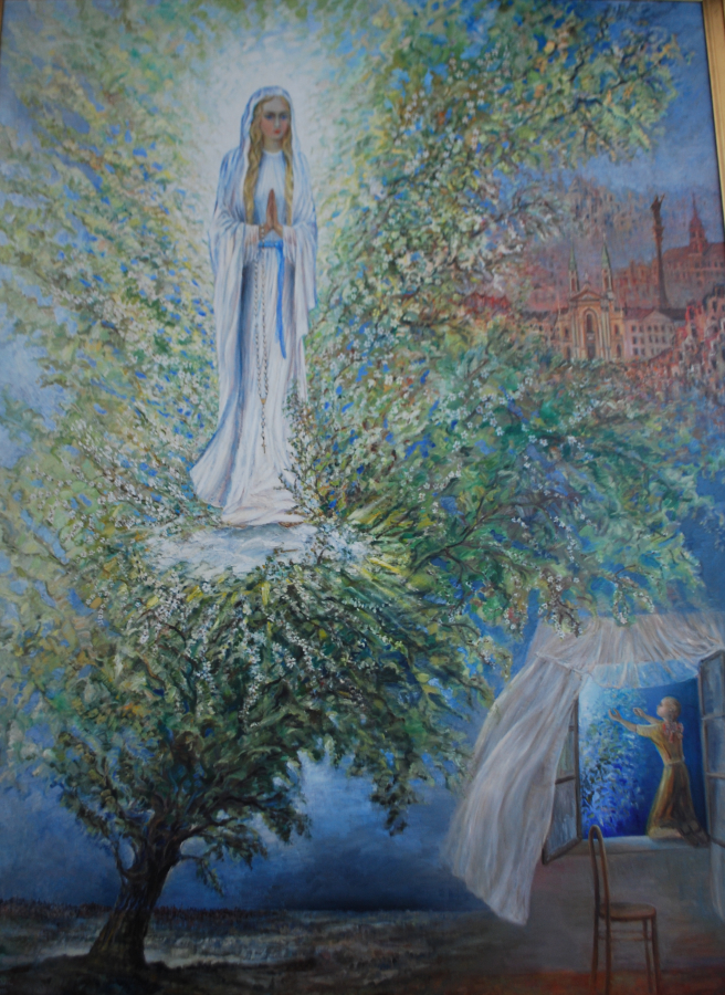 Władzia oczywiście nie wiedziała, jak spełnić prośbę Madonny, poprosiła więc rodziców o obrazek, który wcześniej zakupiono na straganie w kościele parafialnym pw. św. Bonifacego, w czasie odpustu (14.v). Obrazek — Matki Bożej z Lourdes z Bernadettą Soubirous (dziś świętą) — powiesiła na drzewie wiśni: w ten sposób powstała pierwsza „kapliczka”…