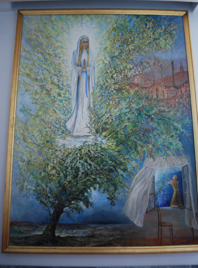Powieszono ją, z figurką Matki Bożej we wnętrznu, na miejscu objawień, na wiśni. Już wtedy zresztą nie było to jedyne miejsce objawień — Matka Boża miała się objawiać wizjonerce także w jej pokoju na poddaszu, gdzie urządzono malutki ołtarzyk ku czci Niepokalanej…