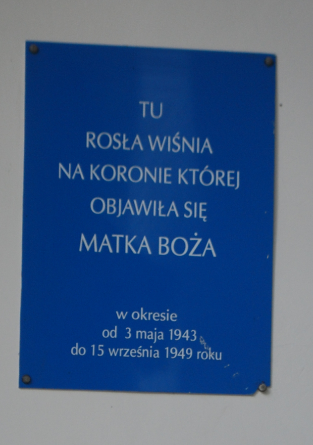 W ix.1943 r. niejaka Kundegunda Janowska, właścicielka ogrodu, w którym miały miejsce objawienia, niedaleko wiśni wystawiła szklaną gablotkę-kapliczkę, na betonowym fundamencie, w której umieściła — oprócz figurki Matki Bożej — zeszyt z notatkami prowadzonymi przez Władzię oraz zapisy litanii i koronki, podyktowanymi przez Madonnę. Niebawem Piękna Pani zaczęła się objawiać Władzi także przy owej kapliczce…